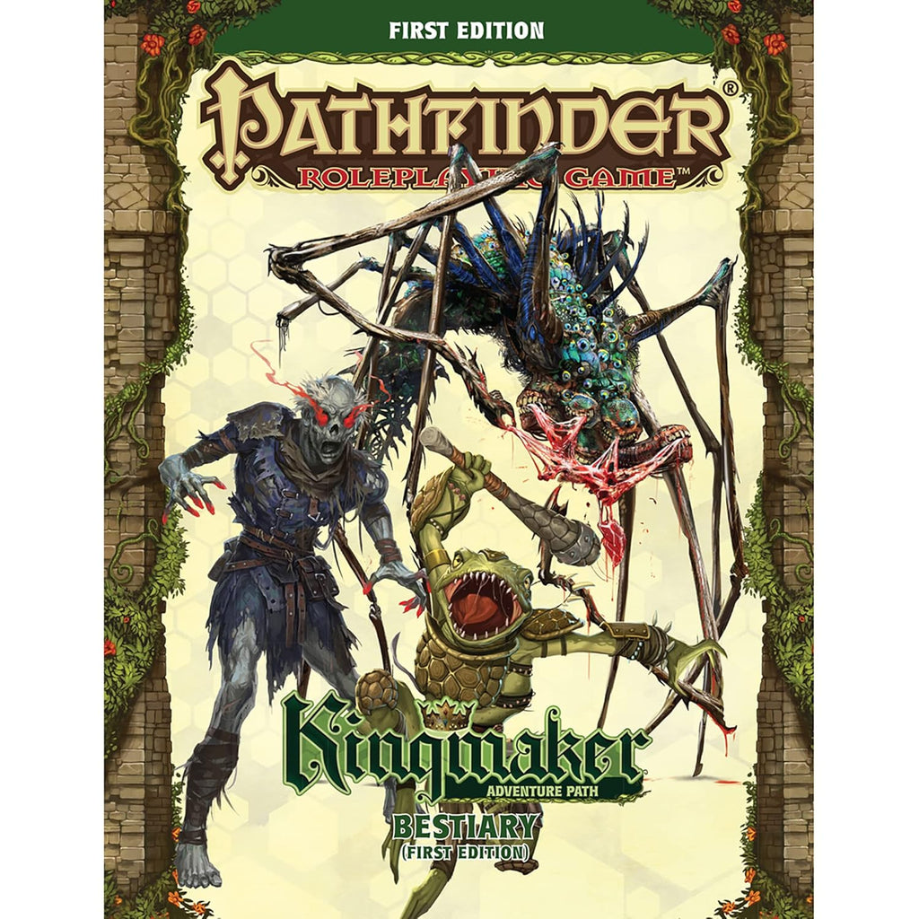 From feral beasts to supernatural sprits from the realm of fey, the Kingmaker Adventure Path forces heroes to test their might against hundreds of foes―be they bandit lords, evil kings, or demigods. This book presents rules for over 200 monsters and villains, 45 traps and hazards, and seven companion NPCs presented with a low-level and mid-level stat block, making them suitable for play as adventuring companions or even pregenerated player characters―all compatible with any Pathfinder First Edition game. Designed to work alongside the new Kingmaker Adventure Path campaign book, this volume makes quick conversion of the campaign to Pathfinder First Edition a breeze! Challenge your heroes while playing through the Kingmaker Adventure Path, or populate a campaign entirely of your own design!