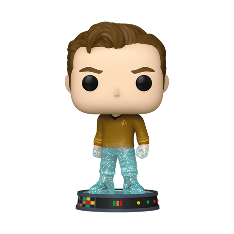 Energize! Join POP! Plus James T. Kirk atop the transporter platform as he is beamed to a new, uncharted world! With dazzling glitter fill, this collectible seemingly dematerializes right before your eyes. Complete your crew when you welcome this iconic leader to the bridge in your Star Trek collection. Vinyl figure is approximately 4.55 in (11.6 cm) tall.
