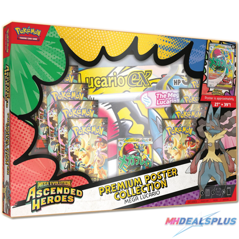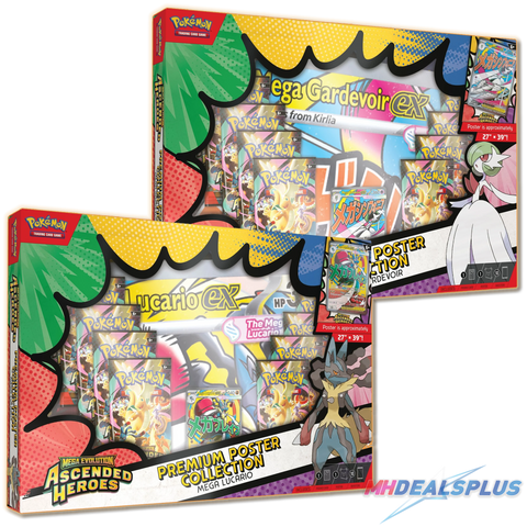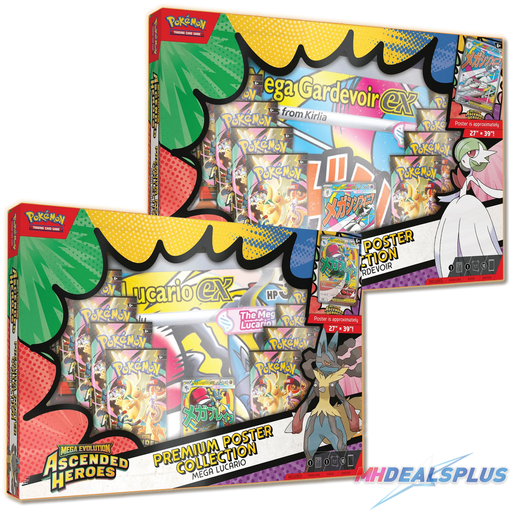 The Pokemon TCG: Ascended Heroes Premium Poster Collection Set of 2 (Mega Lucario ex/Mega Gardevoir ex) includes: