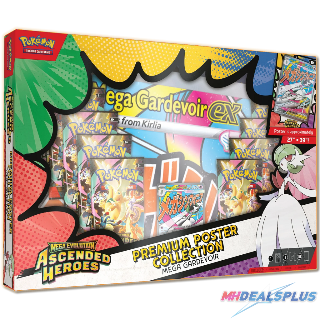 With strong attacks and big HP, Mega Lucario ex and Mega Gardevoir ex break through boundaries in battle! Team up with one of these powerful. Mega Evolution Pokemon ex as a full-art foil promo card, then find even more Pokemon inside a stack of 10 booster packs from Mega Evolution Ascended Heroes. You'll also get a large poster showing off Mega Lucario or Mega Gardevoir and other Pokemon featured in this special expansion!