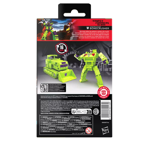 Bring the epic action of the Transformers movies from the big screen into your collection with the Transformers Studio Series 11.5 cm Deluxe Class Bonecrusher action figure, inspired by Transformers: The Movie! Combine the Bonecrusher figure with other Transformers Constructicon action figures to create the Devastator action figure! (Each sold separately, subject to availability.) Transformers Studio Series toys are collectible action figures that feature movie-inspired details and accessories. Convert the Studio Series Transformers action figure from robot to bulldozer mode in 16 steps. The figure has articulated head, arms, and legs for action poses. Look for more Transformers Studio Series collectible figures to build a movie-inspired collection (each sold separately, subject to availability)!